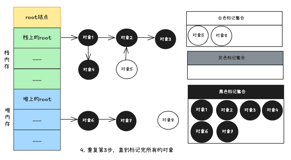 - 🔁 重复第 3 步,直到标记完所有的对象
