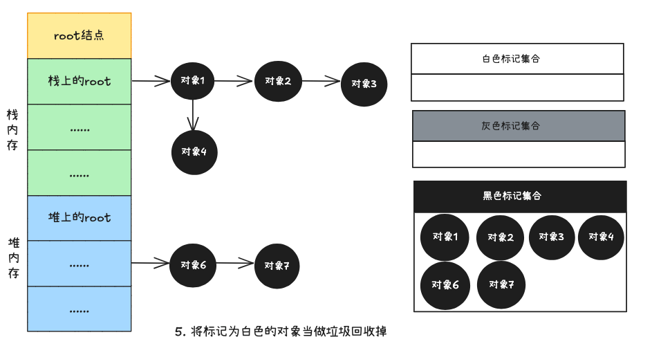 - 🧹 将标记为白色的对象当做垃圾回收掉
